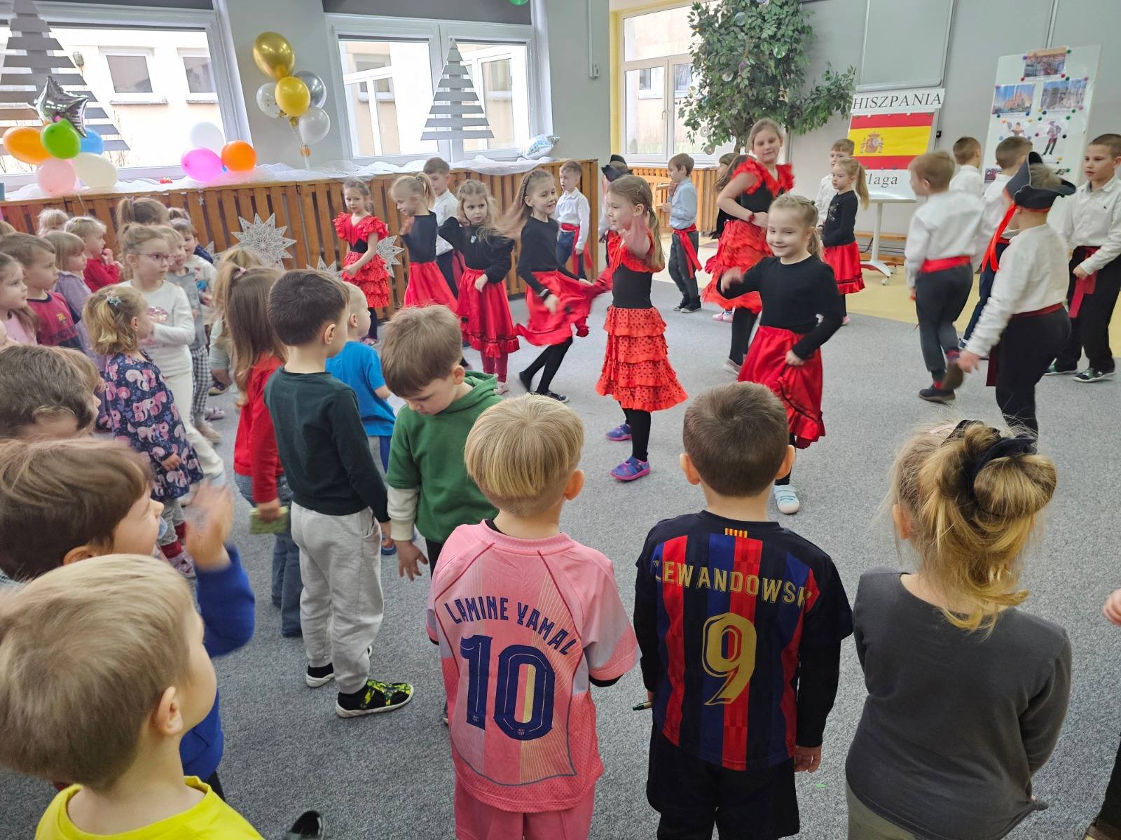 Ananaski zabrały całą społeczność przedszkolną w „Podróż do Hiszpanii”. Dzieci poznały symbole narodowe kraju oraz monarchę. Próbowały nauczyć się kilku słów w języku hiszpańskim. Gotowały „na niby” paellę – tradycyjny przysmak hiszpański z owocami morza. Poznały stroje hiszpańskie i miały okazję oglądać taniec Piratów, Flamenco oraz walkę torreadora z bykiem w tańcu Margarita. Dotykały muszle i kamienie z Morza Śródziemnego oraz z Oceanu Atlantyckiego. Najwięcej emocji wzbudzały duże muszle Św. Jakuba , które ze względu na swój miseczkowaty kształt, służyły pielgrzymom podróżującym do Santiago de Compostela jako naturalne talerze do jedzenia oraz czerpaki do picia wody. Nie zabrakło też sportowych wrażeń podczas treningu piłkarskiego w barwach FC Barcelony i Realu Madryt oraz szalonej zabawy nawiązującej do słynnej bitwy pomidorowej La Tomatina – hiszpańskiej fiesty. Dzień zwieńczyła wspólna zabawa rytmiczna „Chocolate”.